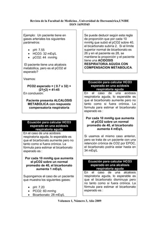 Gases Arteriales INTERPRETACION Nuevo Fórmula de Winter para la PCO2 prevista Compensacion Ac. Calculo de Insulinas NPH-Glargina-Cristalina. Con o sin componente de fotosensibilidad.