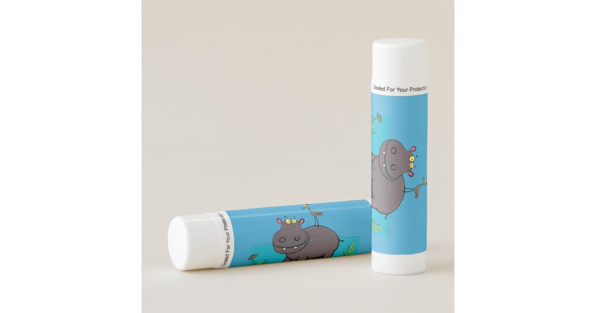 Cute Funny Hippopotamus With Bird Cartoon Lip Balm Zazzle